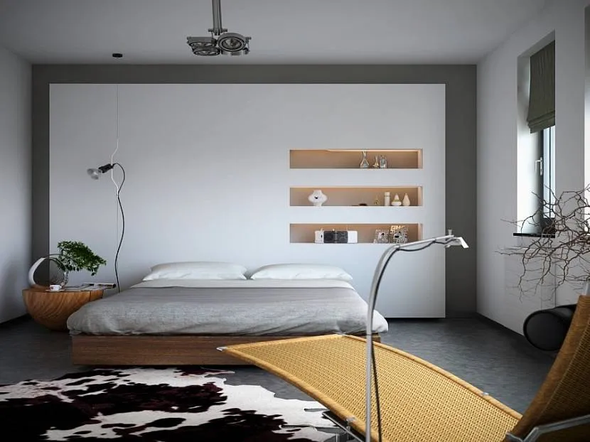 Если для обустройства спальни был выбран современный стиль, то в интерьере должны преобладать геометрические мотивы. Касается это и ниши. Ее форма должна быть четкой, с явно выраженными углами.
