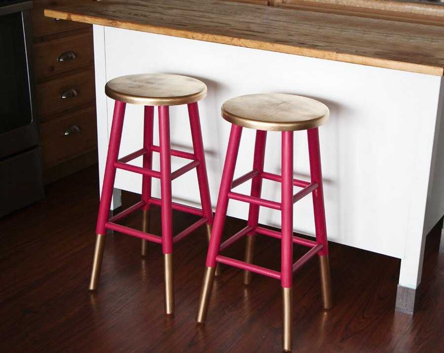Если творческие способности недостаточно развиты или просто нет времени, то можно украсить стул яркими красками, что тоже придаст ему уникальности. Интересным решением станет применение джутовой веревки – ею можно обмотать элементы конструкции. Выбор способов декорирования огромен. Все зависит от вкусов, желаний, способностей, фантазии. Как бы то ни было, барный стул, изготовленный и декорированный своими руками, станет изюминкой любого интерьера, гордостью мастера.