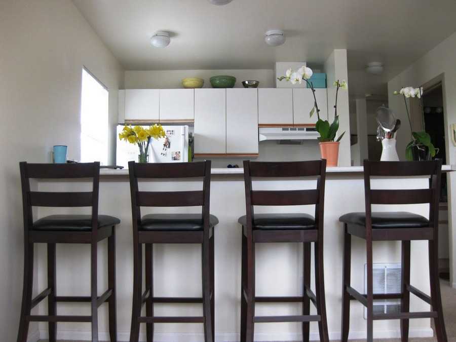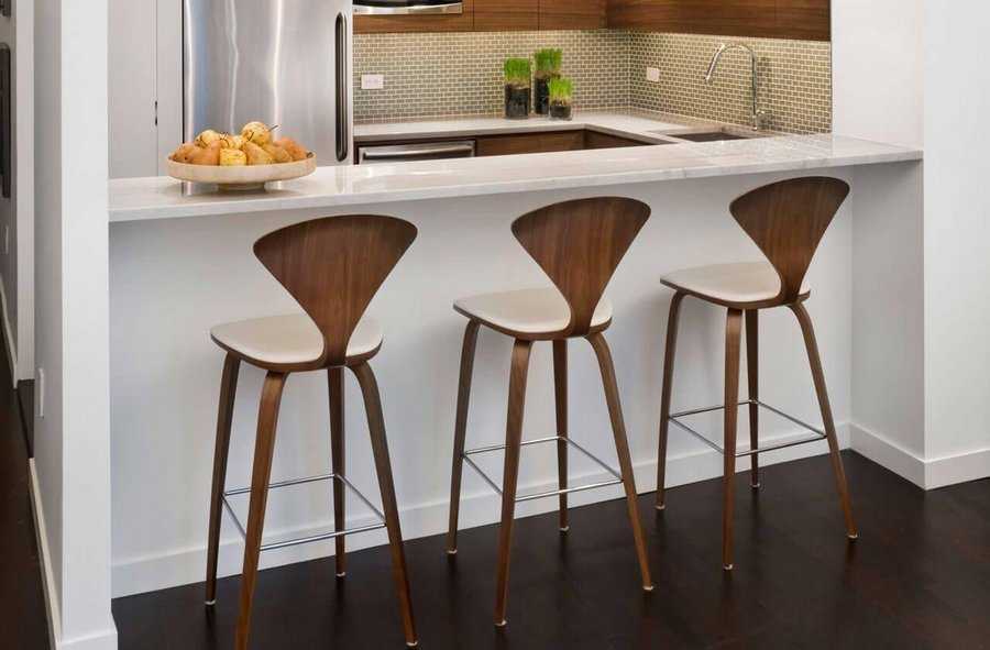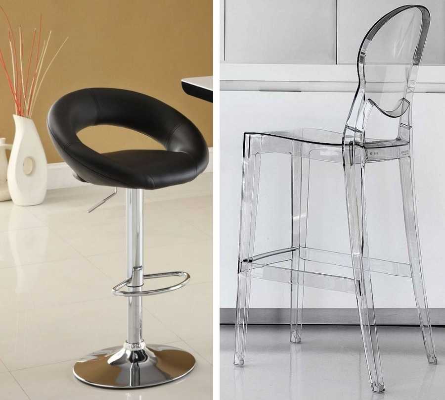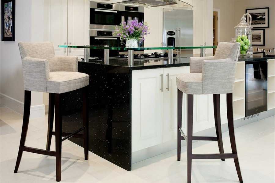 - удобно, если у стула будет подножка, спинка и подлокотники (эти части стула должны быть обязательно, если барная стойка служит как обеденный стол);