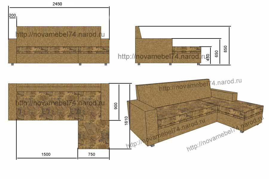 Прежде, чем сделать угловой диван самостоятельно нужно четко определиться с его компоновочной схемой и еще раз просмотреть все подготовленные чертежи.