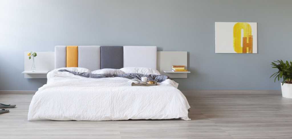 Самый практичный вид изголовья, который довольно просто сделать самому. В качестве материала вам может послужить старый шкаф или старая столешница. Если ничего подходящего в доме не нашлось, придется немного потратиться и купить листы ламинированного ДСП и специальную ленту, которой закрывают торцы. Одного листа вам должно хватить на изголовье среднего размера, так как ДСП имеет довольно большой размер. Главное, правильно сделать разметку и раскроить лист с минимальным количеством отходов. В этом вам могут помочь в том же месте, где вы будете осуществлять покупку, обычно у них имеется своя небольшая пилорама и раскройщики.