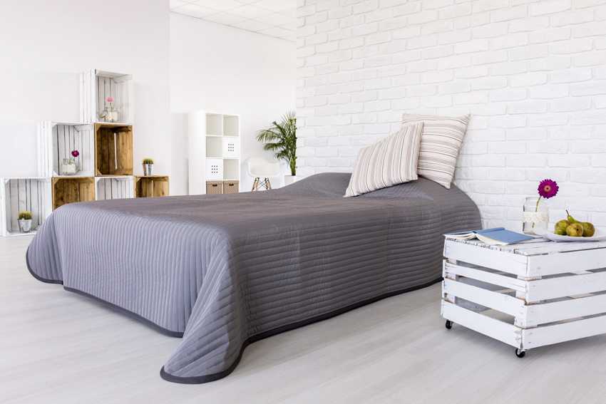 Такая кровать подойдёт к интерьеру лофт или эко-стиле. Она может быть оборудована специальными ящиками или другими декоративными элементами.