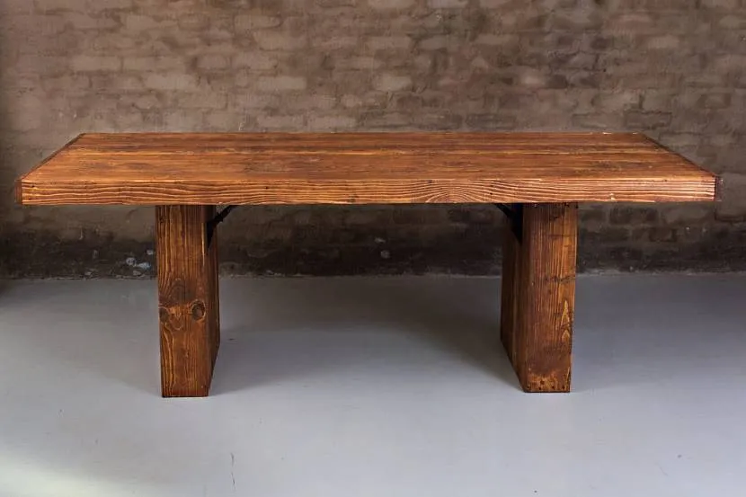 Стол, целиком выполненный из бруса толщиной 100 мм, получается массивным, основательным и выглядит внушительно.