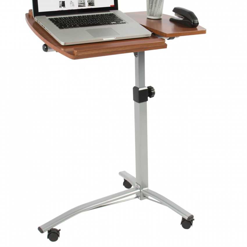 Приставной столик для ноутбука послужит не только несущей поверхностью для ноутбука, но подставкой для хранения часов, очков, мобильника, газет и прочего. Выполняется он аналогично стандартному, с той лишь разницей, что стойки у данной напольной модификации ножки будут существенно выше.