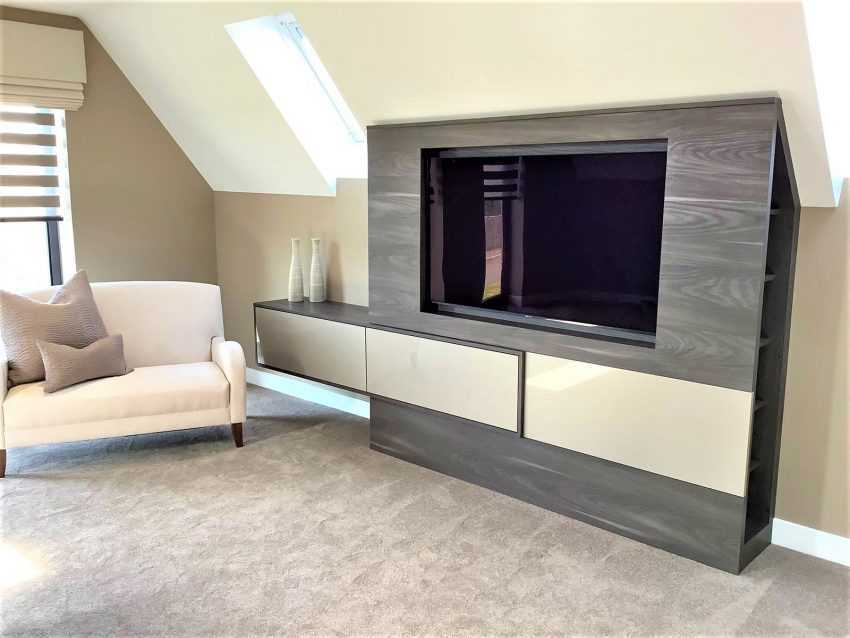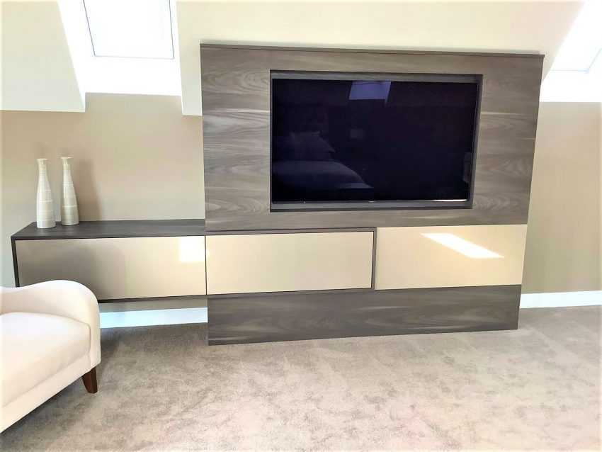 Многие специалисты заявляют, что в спальне не место для техники, и от телевизора лучше отказаться, перенеся его в гостиную, но на практике оказывается, что в спальне используют телевизор практически все. Его можно установить на комод или подвесить на кронштейны.