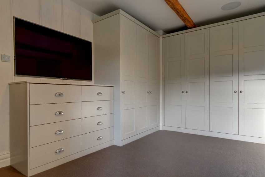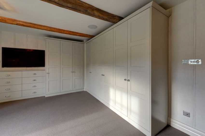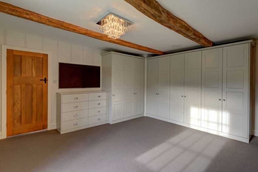 Для спальни нужно предусмотреть двуспальную кровать, а также шкаф, если в квартире нет отдельной гардеробной комнаты