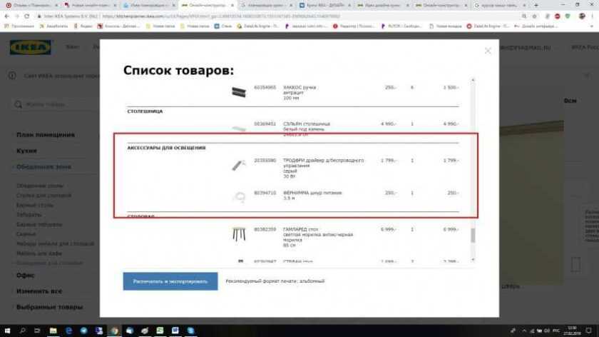 Как рассчитать кухонный гарнитур в программе