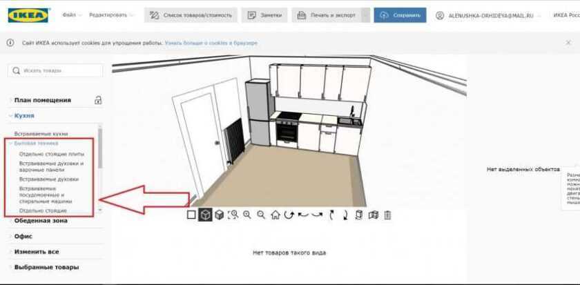 - Не забудьте расставить технику – холодильники, духовки и варочные панели представлены в большом количестве, можно менять размеры и материал.