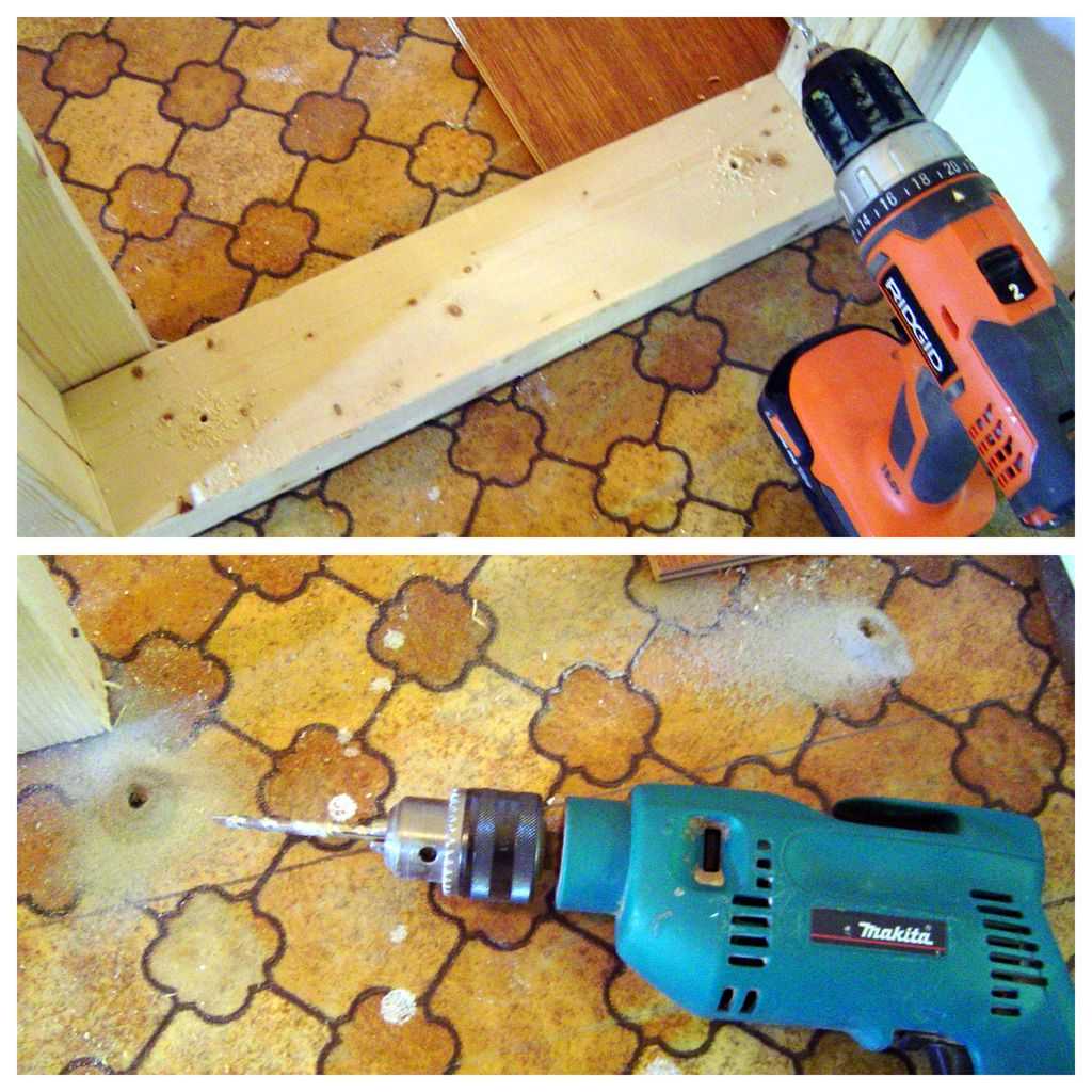 - Дрель со свёрлами по дереву и конфирматное сверло для отверстий под евровинты.