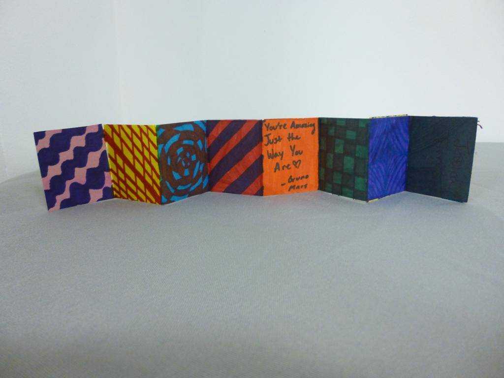 Делая такую необычную книжку, можно научиться аккуратно штриховать, делать ровные и волнистые линии, а также опробовать новые фломастеры или карандаши.