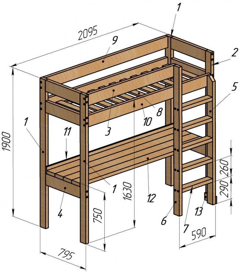 Многие виды кроватей можно сделать самостоятельно: схемы есть в свободном доступе. Но каждая модель индивидуальна в исполнении. Односпальный вариант – самый простой, а вот под старину или встраиваемая мебель требуют навыков работы с деревом и инструментом.