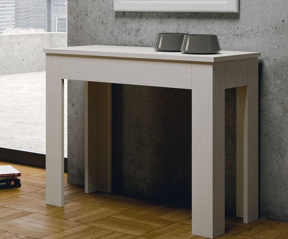 Раскладной стол допускается использовать сложенным. Он очень прочный, функциональный, за ним с легкостью разместится до 6 человек. Ножки мебели без усилий приподнимаются. Недостаток консоли — из-за отсутствия дополнительной опоры ближе к краям такая столешница не способна выдержать повышенную нагрузку.