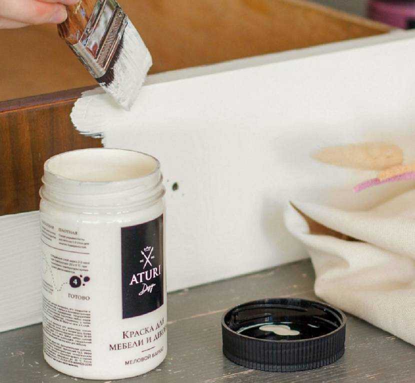 Профессиональные составы позволяют работать с поверхностью любой запущенности. При помощи меловых красок для мебели удается создать идеально ровный матовый слой на фасадах. Чтобы получить глянцевый блеск, сверху наносят финишное (восковое) покрытие. Материал быстро сохнет, подходит для древесины, металла и пластика. Единственный минус – высокая цена.
