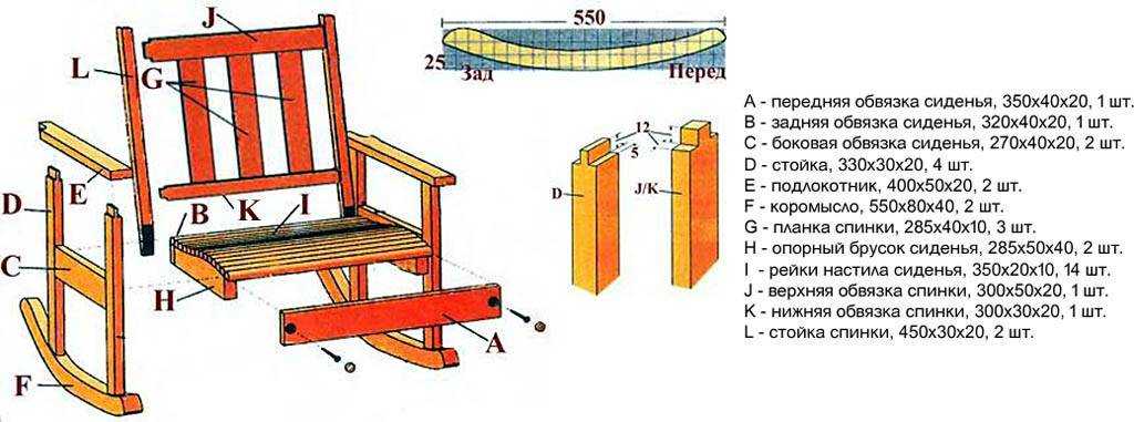 На завершающем этапе вырезаются рейки и дощечки для спинки кресла-качалки из фанеры. Прикрепить их обыкновенными саморезами.