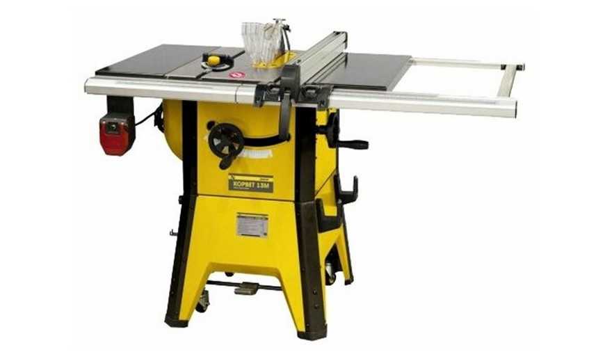 Лучший распиловочный станок среди подобных -Ryobi RTS1800EF, эффективно и широко применяется профессионалами. Не остаётся без внимания и со стороны любителей столярного мастерства. Оснащённый алюминиевым столом с хорошим запасом прочности к износу, он позволяет равномерно продвигать пиломатериал к диску. Направляющие с упорами воссоздают точность резки деревянных заготовок. Режущим элементом выступает пильный диск с 48 зубьями. Размер стола составляет 560х710 мм, в комплектацию включены 2 гаечных ключа, складная станина и опора.