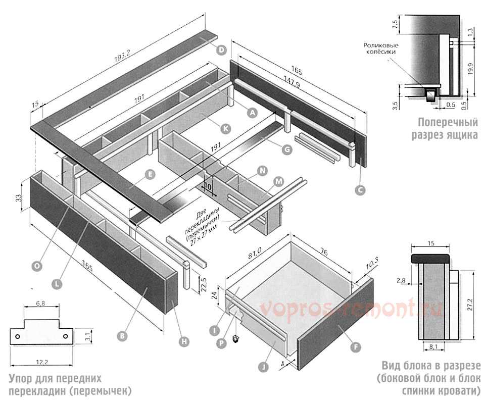 ΠΠ΅ΡΠ°Π»ΠΈ A β H ΠΈΠ·Π³ΠΎΡΠ°Π²Π»ΠΈΠ²Π°ΡΡΡΡ ΠΈΠ· Π΄ΠΎΡΠΊΠΈ 22 ΠΌΠΌ; I β J ΠΈΠ· Π΄ΠΎΡΠΊΠΈ 16 ΠΌΠΌ; K β O ΠΈΠ· ΠΠ‘Π 19 ΠΌΠΌ, Π° P β ΠΈΠ· 10 ΠΌΠΌ ΡΠ°Π½Π΅ΡΡ. ΠΡΠΎΠΌΠ΅ ΡΠΎΠ³ΠΎ, ΠΏΠΎΠ½Π°Π΄ΠΎΠ±ΠΈΡΡΡ Π±ΡΡΡ 27Ρ 27 ΠΌΠΌ Π΄Π»Ρ ΠΏΠΎΠΏΠ΅ΡΠ΅ΡΠ½ΡΡ ΠΈ 27Ρ 47 ΠΌΠΌ Π΄Π»Ρ ΠΏΡΠΎΠ΄ΠΎΠ»ΡΠ½ΡΡ ΠΎΠΏΠΎΡ ΠΌΠ°ΡΡΠ°ΡΠ°; Π½Π°ΡΡΠΈΠ» Π»Π΅ΠΆΠ°ΠΊΠ° Π½Π΅ ΠΏΡΠ΅Π΄ΡΡΠΌΠΎΡΡΠ΅Π½. Π ΡΠ΅Π»ΠΎΠΌ β ΡΠ»ΠΎΠΆΠ½ΠΎΠ²Π°ΡΠΎ Π²ΡΠ΅ ΠΆΠ΅.