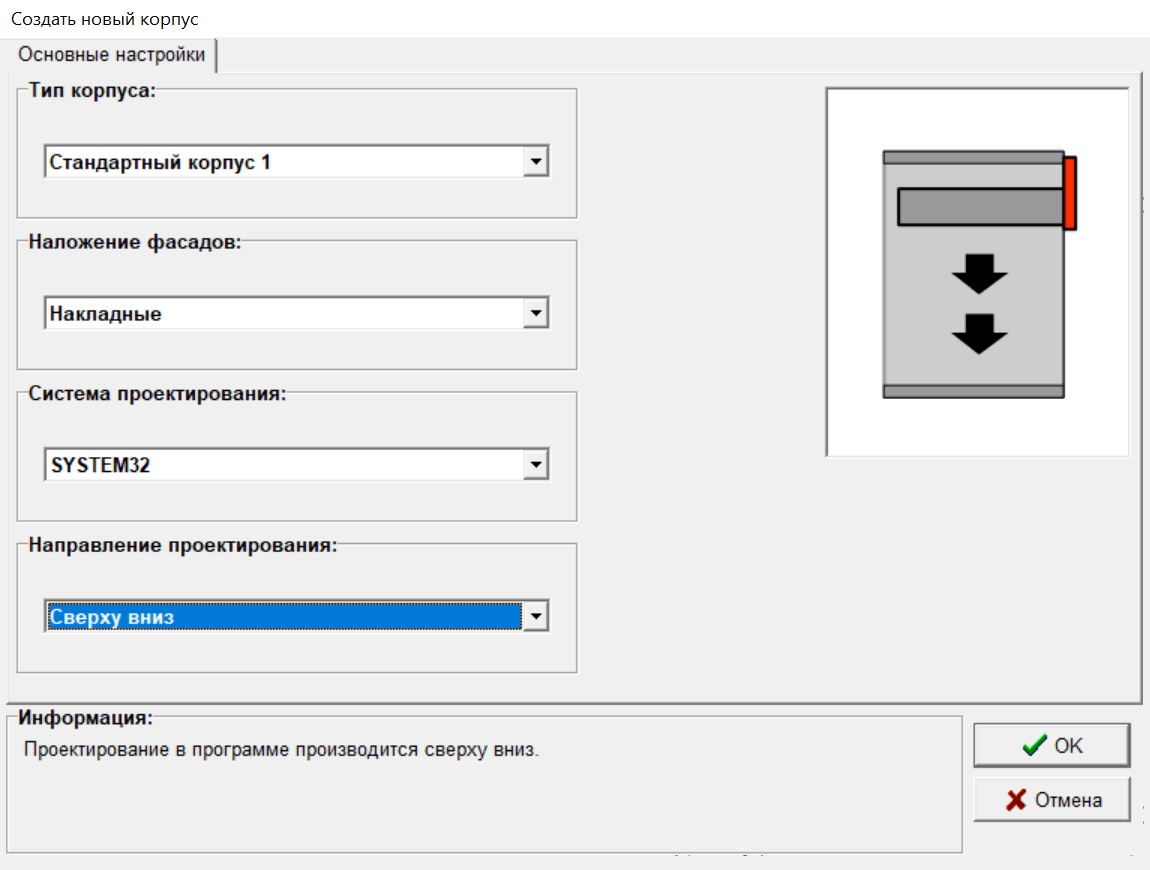 В «Диналоге» надо указать тип и параметры самого шкафа. «Стандартный шкаф» — обычная тумбочка с ящиками