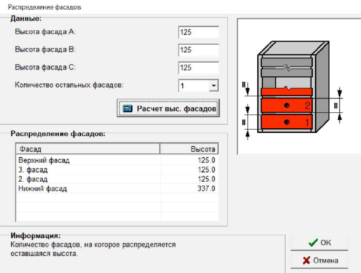 В итоге пользователь получит чертеж фасада с отверстиями для крепления ящика