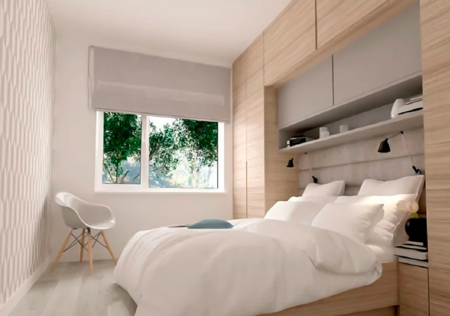 В небольших спальнях идея установки шкафа вокруг кровати буквой П крайне востребована. Она позволяет сэкономить полезное пространство в помещении без ущерба для единства стиля и гармоничности интерьерного дизайна.