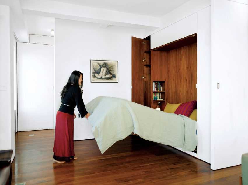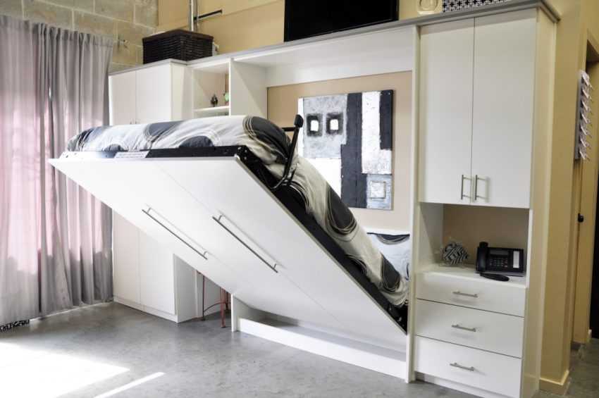 Представляет собой целую конструкцию из элементов для хранения вещей и выдвижной кровати. Конструкция незаменима в небольших квартирах-студиях, поскольку в дневное время спальное место не будет мешать свободному хождению по комнате, а ночью сможет быстро адаптироваться в полноценную кровать.