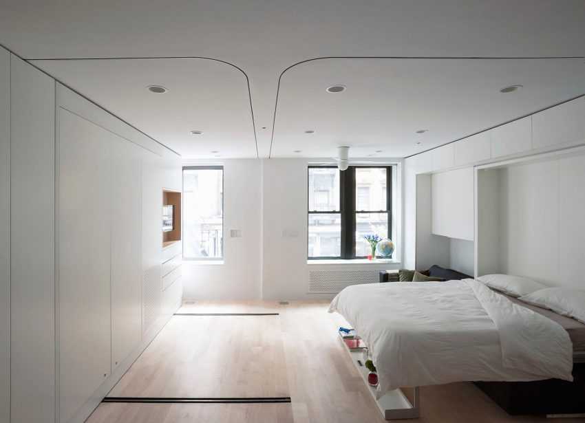 Если вы планируете поставить в спальне шкафы вокруг кровати, обратите внимание на идею организации ниш. Она по-особому уместна в больших помещениях