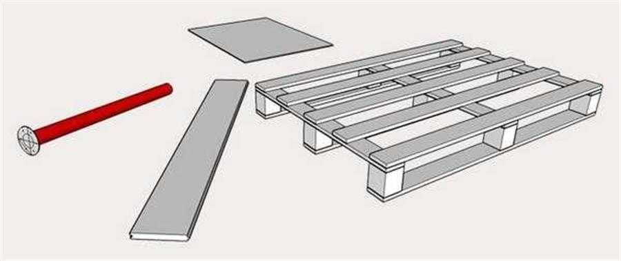 Нам понадобится поддон, фанера или деревянный лист и металлические ножки