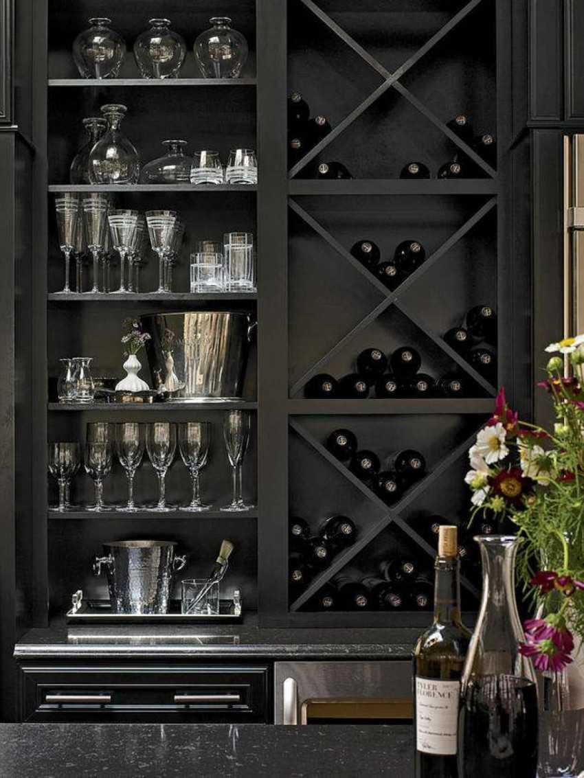 Сюда можно отнести симпатичные варианты для хранения не только бутылок, но и любимых бокалов.