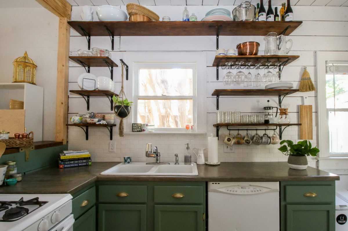Главное, чтобы размеры полки подходили к габаритам вашей кухни. Согласитесь, огромная деревянная конструкция на кухне скромных квадратных метров смотрится, как минимум, нелепо. Не говоря уже о том, что в эксплуатации такая полка будет неудобной.