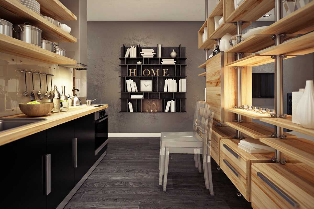 Чаще всего такие конструкции отличаются нарочитой грубостью и массивностью. Их ценят за вместительность и удобство эксплуатации. Лучше всего закрытые полки размещать в больших кухонных пространствах.