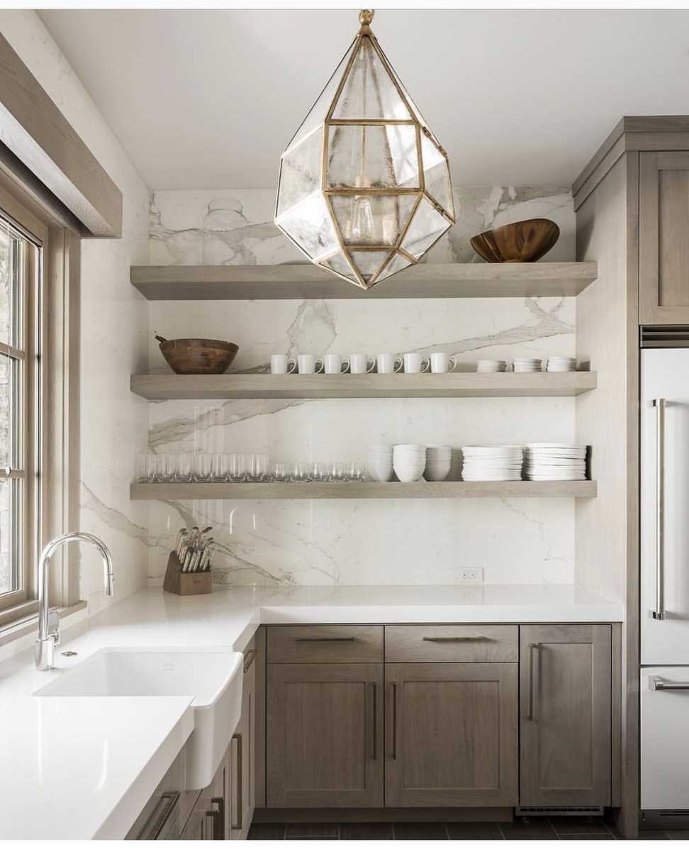 Полки на кухне – самый функциональный элемент. С их помощью появляется возможность разместить массу нужных предметов, причем, сделать это таким образом, что они всегда находятся в зоне доступа. А эффектный внешний вид делает полки еще и декоративным элементом.