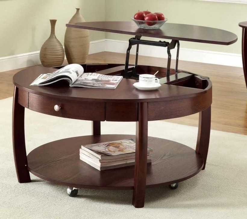 - Тип конструкции. Круглый стол хорошо подойдет как обеденный, но может применяться как журнальный, имея достаточно компактные размеры и небольшую высоту. Еще можно сделать раздвижной и раскладной вариант;