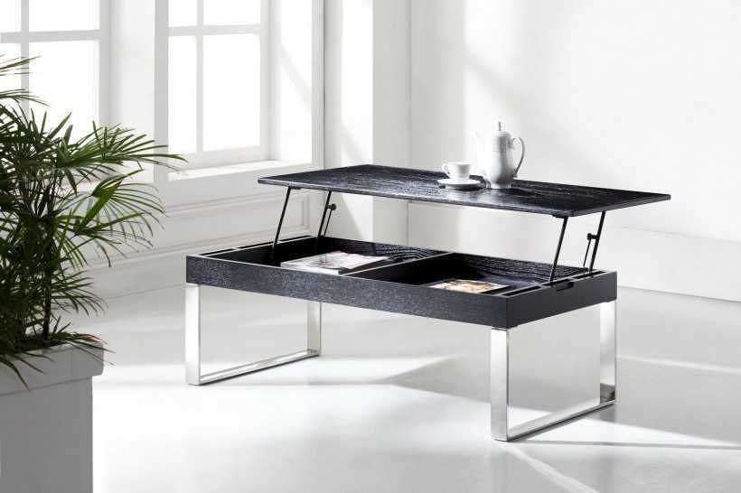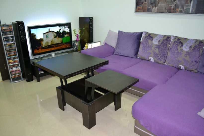 Это все равно, как иметь два стола в одном. Стильный дизайн не занимает много места, но чтобы разместить больше гостей, столешница раздвигается и тогда нормально помещается шесть человек.
