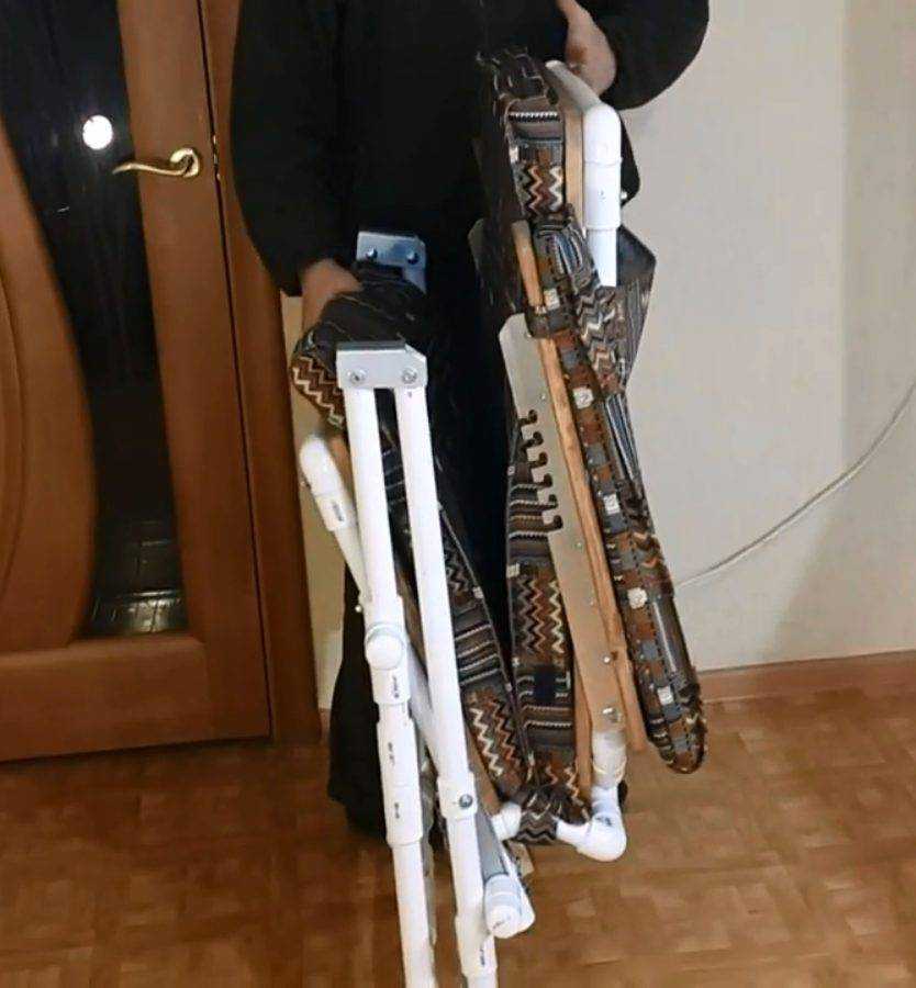 - Кресло-раскладушка — состоит из сиденья и спинки, соединенных петлей.