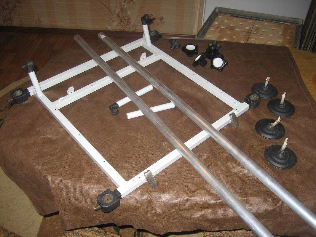 - затем нужно соединить между собой крест – накрест двое трубок. Все элементы конструкции закрепляются на болты;