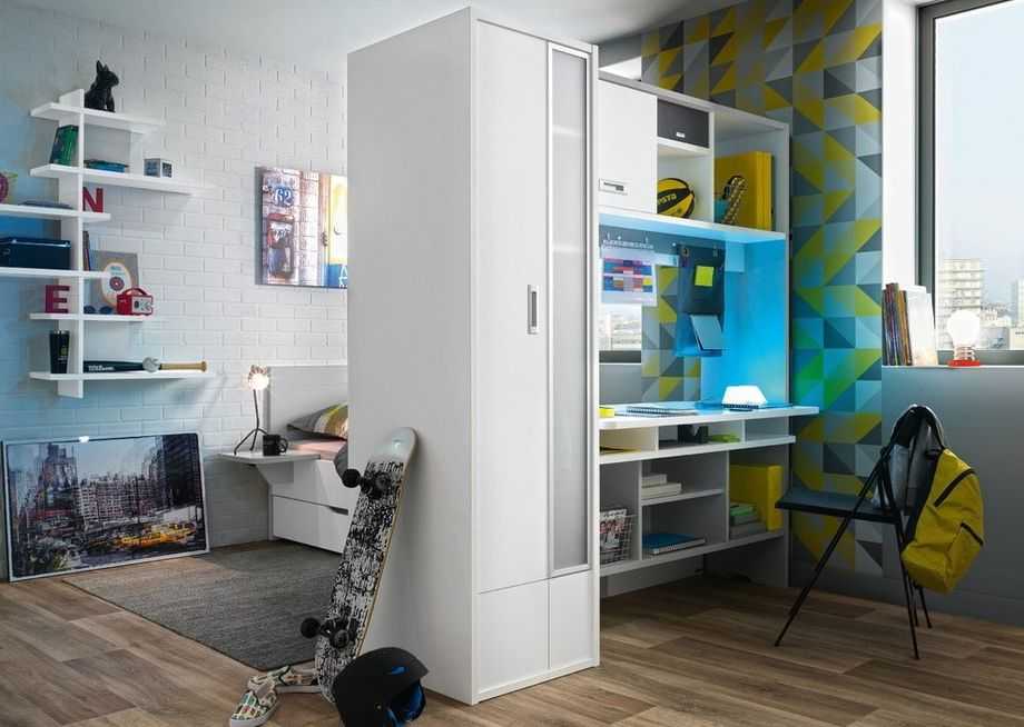 Такая мебель незаменима для квартир, состоящих из одной комнаты. Если в семье появился ребенок, а расширяться возможности нет, можно поставить шкаф-перегородку и сделать жизнь удобнее.