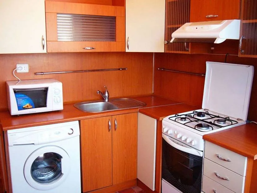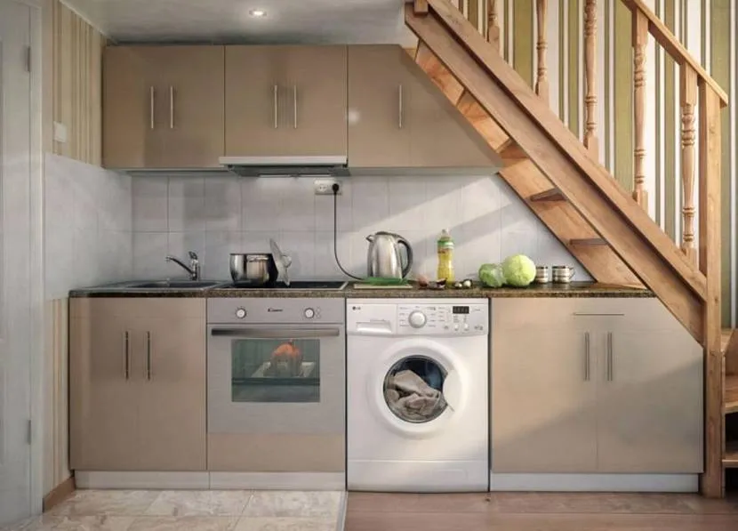 Так называемые «угловые кухни» с установленными стиральными конструкциями или же другие помещения с такой возможностью – это очень удобный, элегантный, комфортный, экономный и многофункциональный вариант.