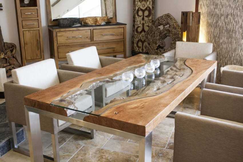 Все рассмотренные инструкции вполне по силам даже начинающему мастеру. Мебель с применением эпоксидной смолы разнообразит интерьер, придаст ему эффектности. А изготовленный своими руками стол будет поводом для гордости, ведь это вещь с отпечатком индивидуальности.