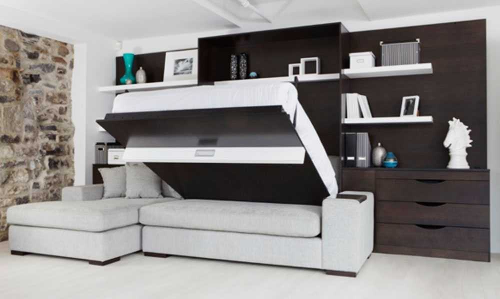 Такие предметы мебели могут одновременно выполнять несколько функций. Единая конструкция может состоять из шкафа, удобных ящиков, кровати, стеллажа. Некоторые модели могут трансформироваться в диван с последующим горизонтальным разложением всех частей.