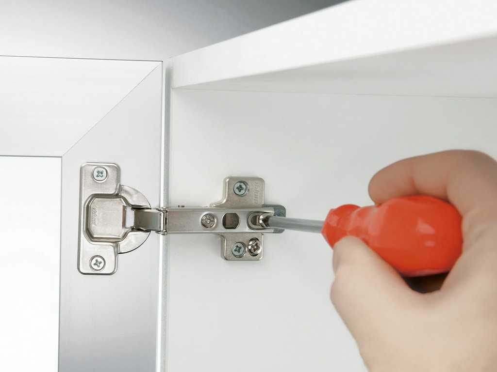 Также регулировкой «убираются» неприятные скрипы при открывании и закрывании. Подтягивать винты на петлях стоит время от времени – двери мебели под собственным весом неизбежно провисают. Своевременная регулировка продлит срок службы крепежной фурнитуры.