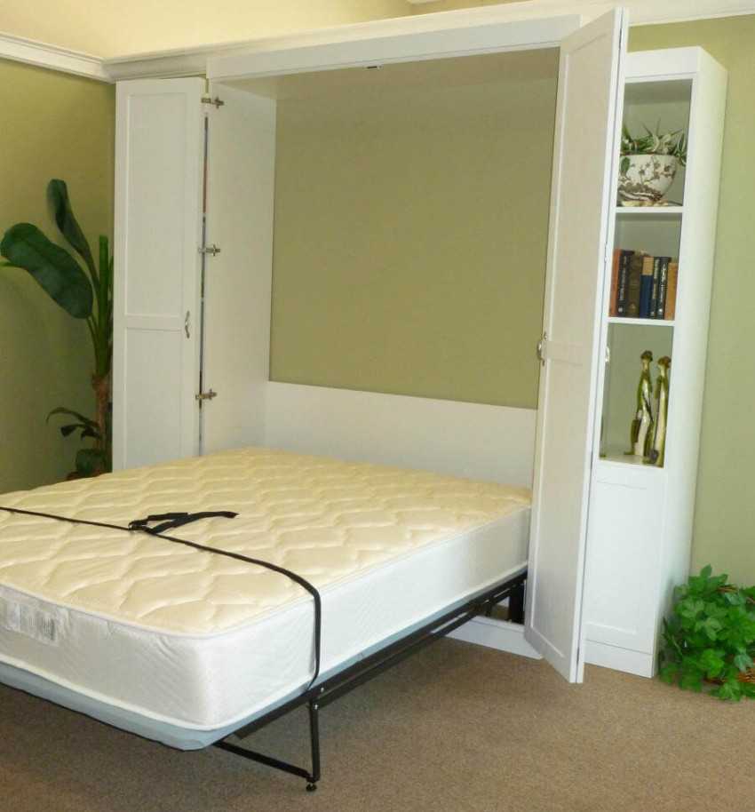 вертикальной. Такое изделие представляет собой двухметровый шкаф, изголовье которого закреплено на стене, а спальное место прячется в дневное время в шкафу;