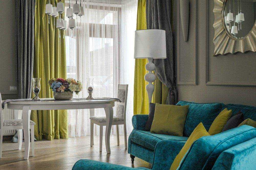 Типы и особенности бирюзовых штор в интерьере