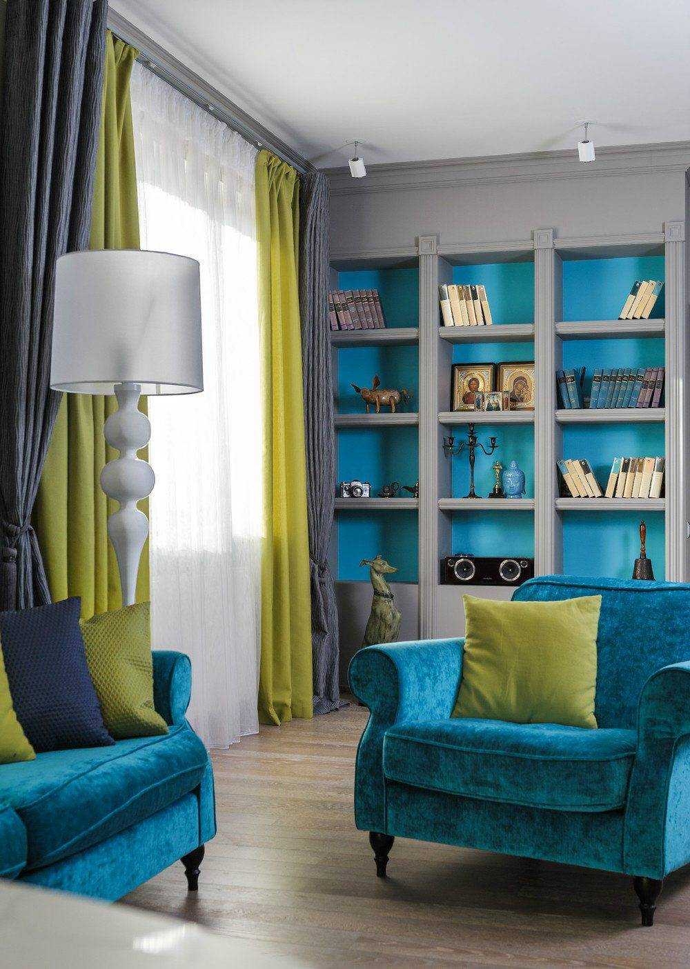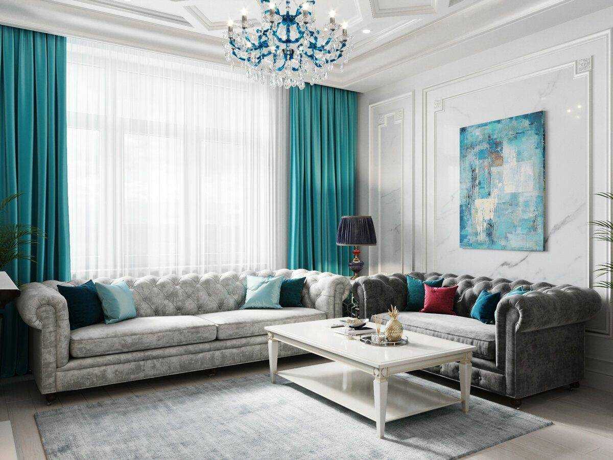 бирюзовые шторы подходят под любой стиль интерьера