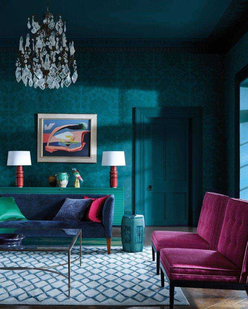 Это достаточно универсальный цвет: он подходит ко многим стилям. Так, насыщенный бирюзовый тон с характерными узорами впишется в классический стиль. А добавив к этому цвету хромированные детали можно создать хай-тек.