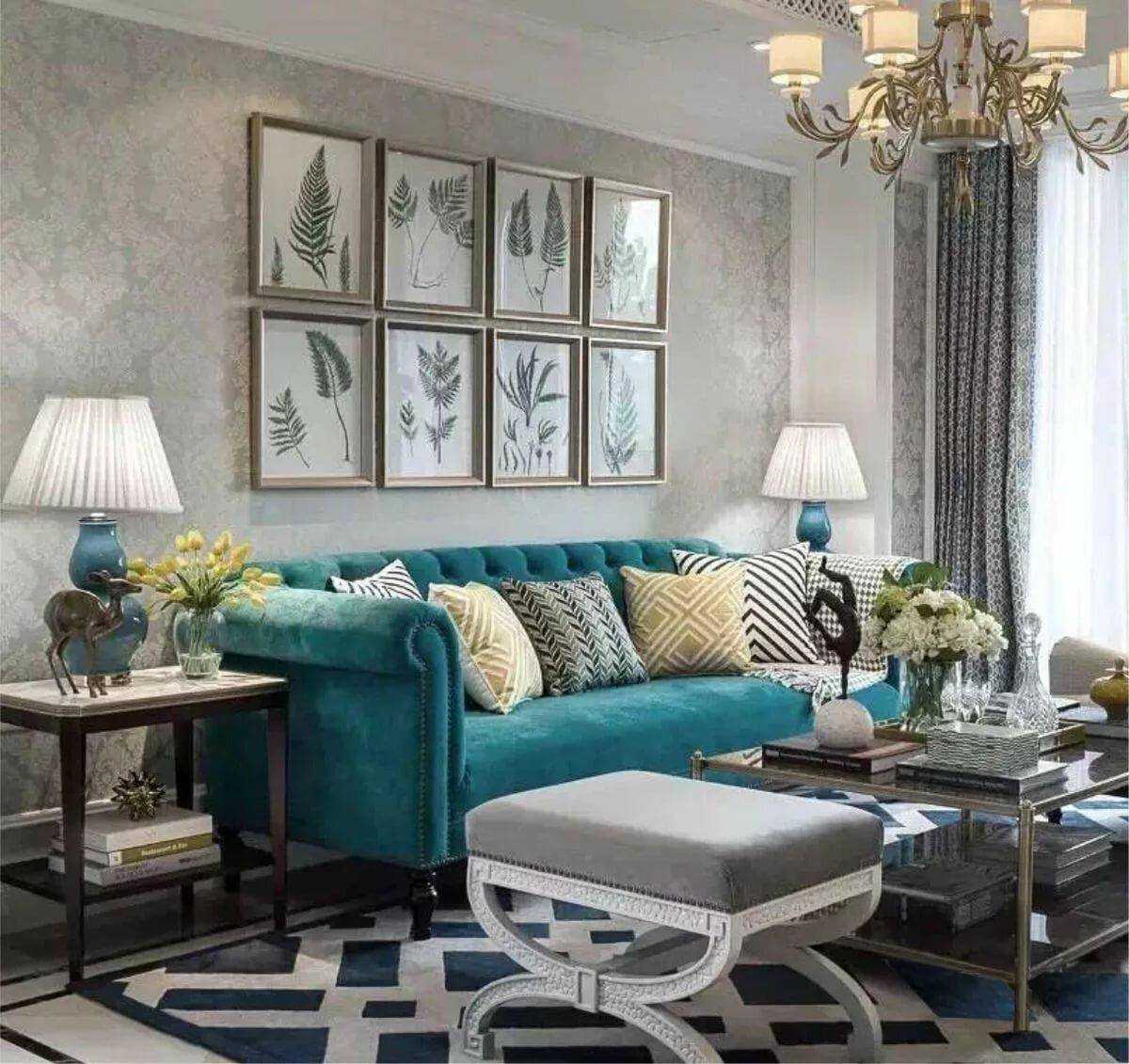 В современных интерьерах часто царят минимализм и сдержанная цветовая палитра. Тем не менее, вы можете видеть, что дизайнеры все чаще хотят добавить бирюзовые акценты в качестве модных акцентов. Посмотрите, как можно использовать данный цвет в современной гостиной.