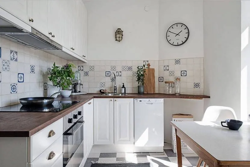 Для стен кухни наиболее практичным и знакомым нам всем решением выступает плитка. Не зря же она не теряет своей популярности на протяжении десятилетий! Действительно, этот материал способен противостоять любым негативным влияниям, в том числе влажности и чистке самыми агрессивными средствами.