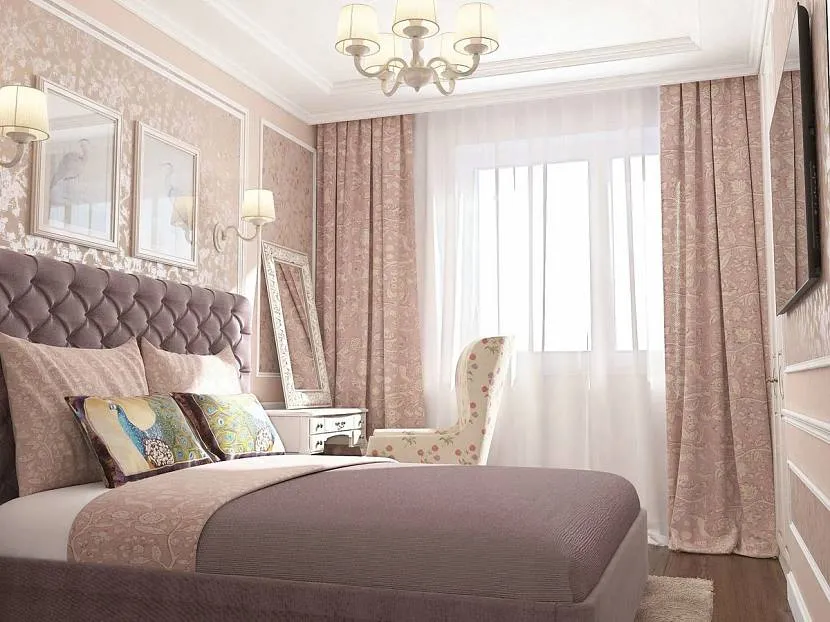 Небольшая спальня в пудровых оттенкахИсточник yandex.com