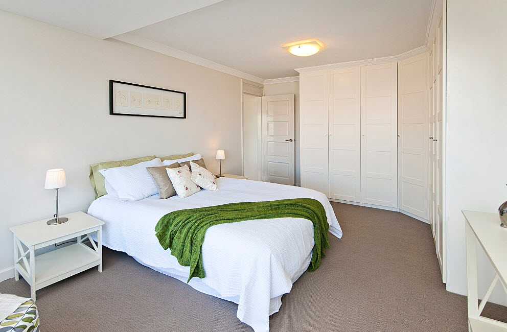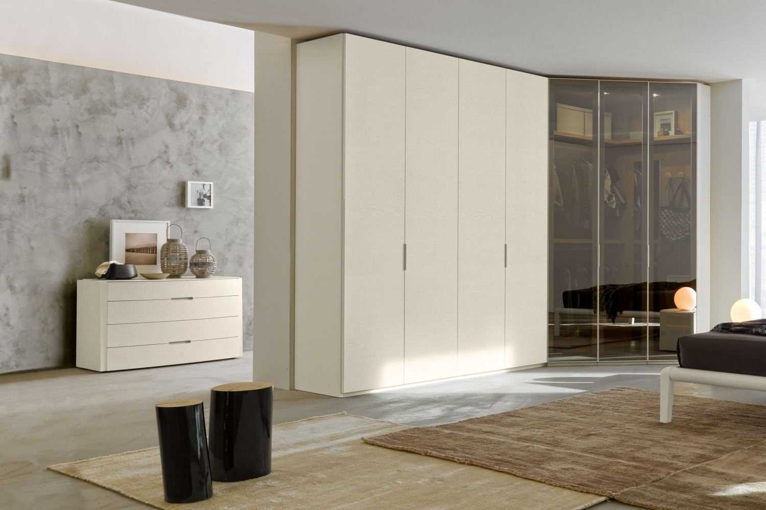 Угловые шкафы в интерьерах спальных комнат