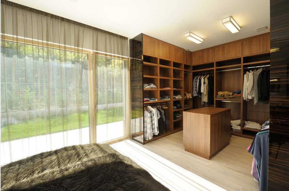 Кстати, именно в гардеробной комнате шкаф не обязательно должен иметь фасады. Очень красиво смотрятся открытые варианты. По мнению дизайнеров, именно такой шкаф стоит выбирать для гардеробной.