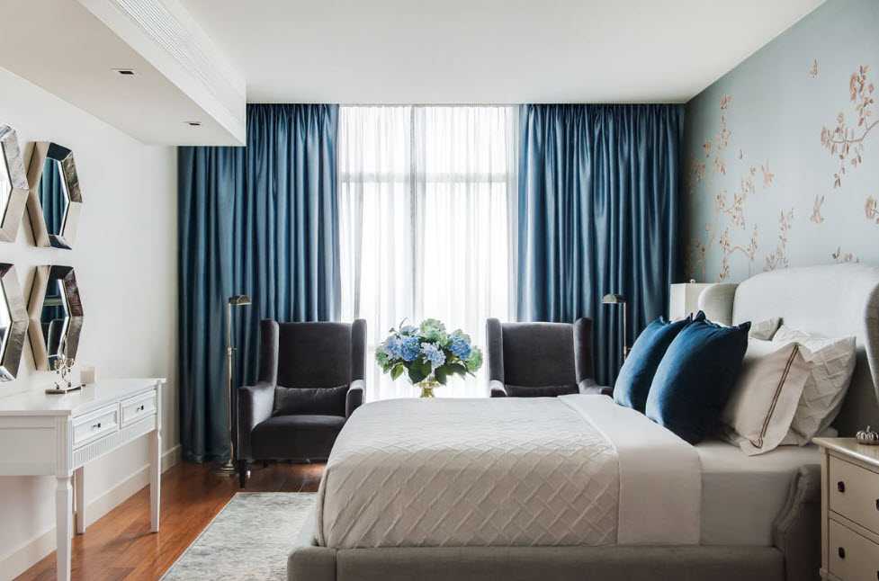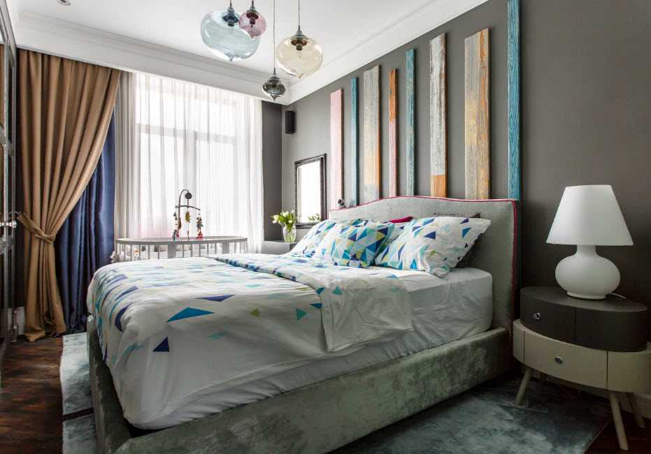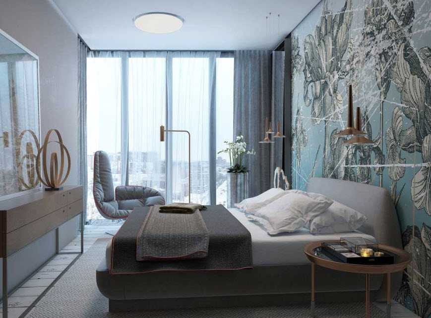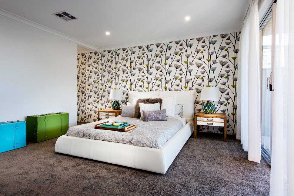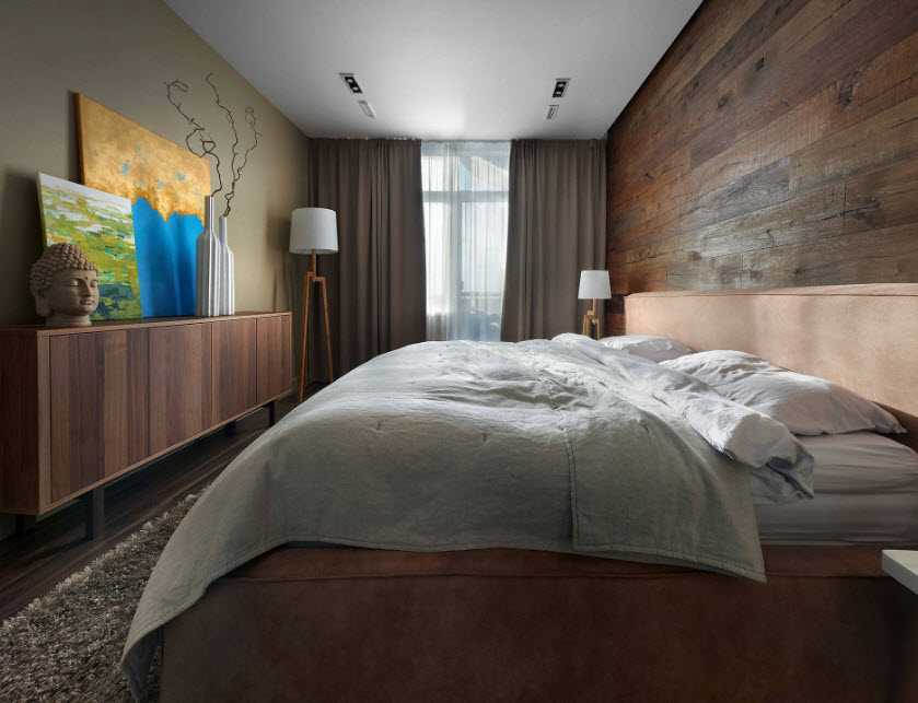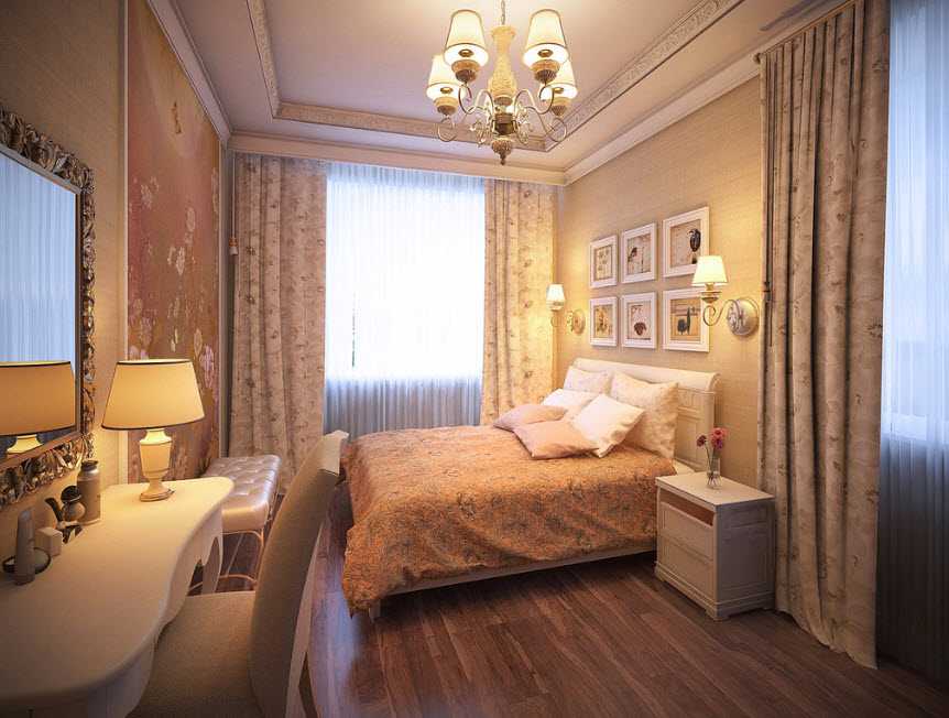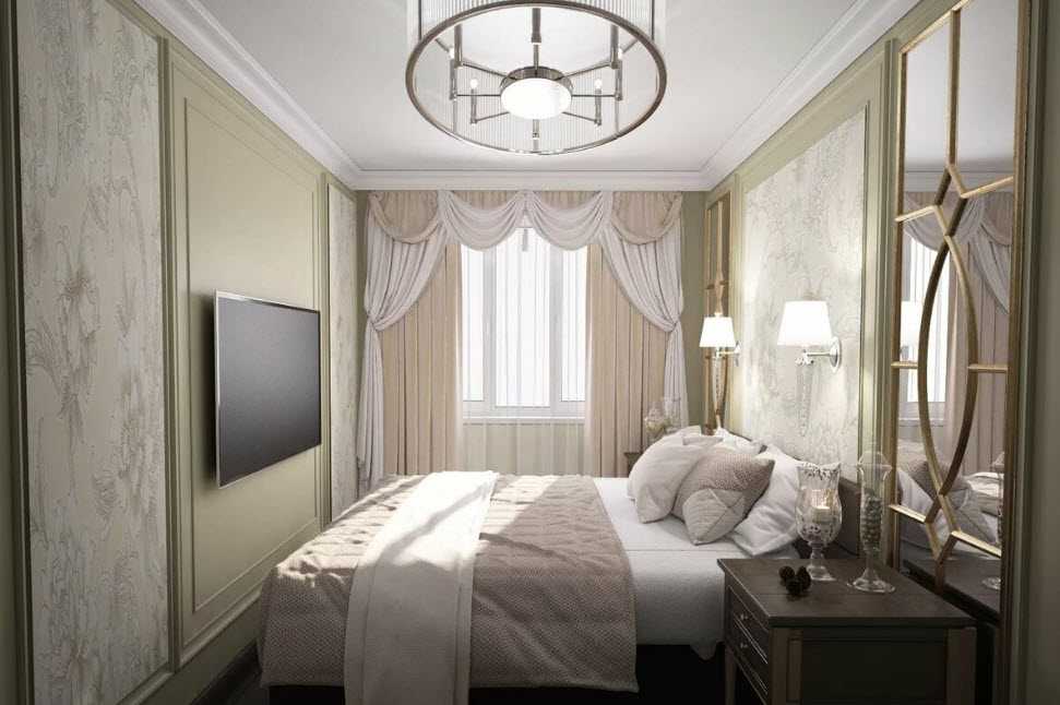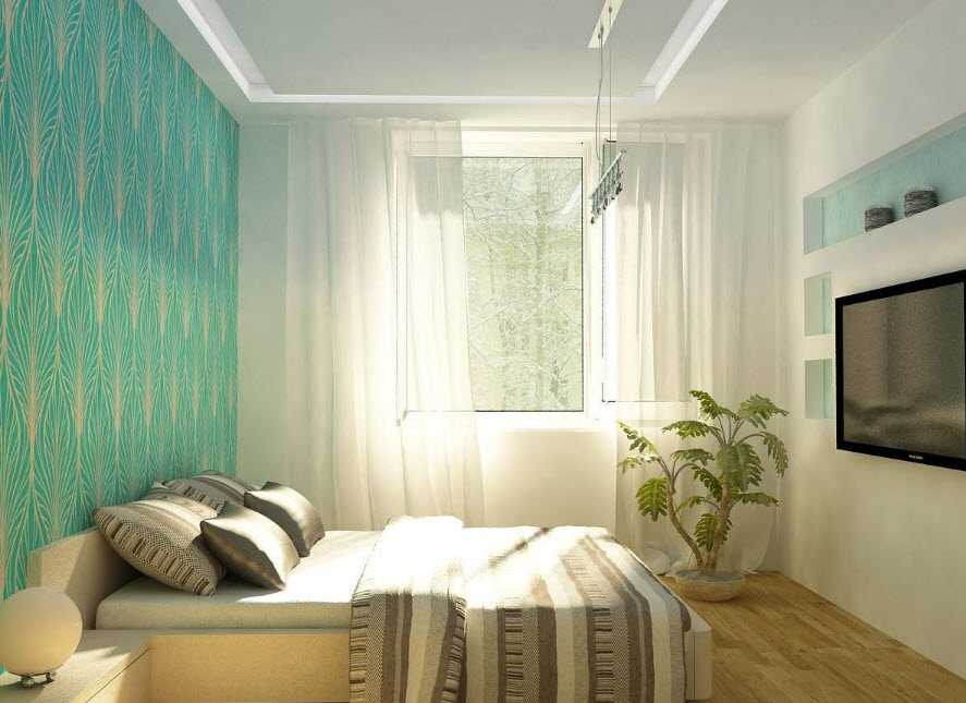В случае, когда спальня получается совсем маленькой, попытайтесь расширить торцевую стену с изголовьем декораторскими приемами: например: оформить ее зеркалами или обоями с оптическим эффектом.