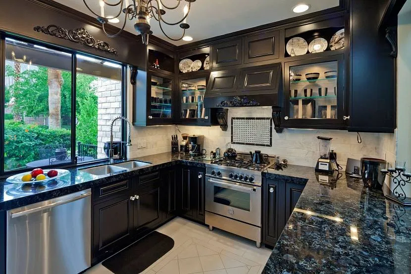 Немного темный климат, основанный на доминирующих цветах черного, серого, с примесью золота и красного, является характерным элементом этого стиля. Вы можете создать его на кухне — умелый выбор цветов и декораций создаст интригующее пространство в комнате